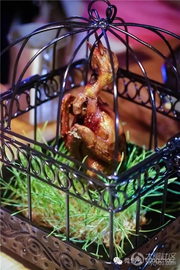 【金丝雀】78元,其实就是乳鸽,妖娆的身姿放在笼子里让人看了好心疼不过就是为了摆盘效果,一会服務员就拿下去切好分给大家了,皮很脆肉很嫩。推荐。