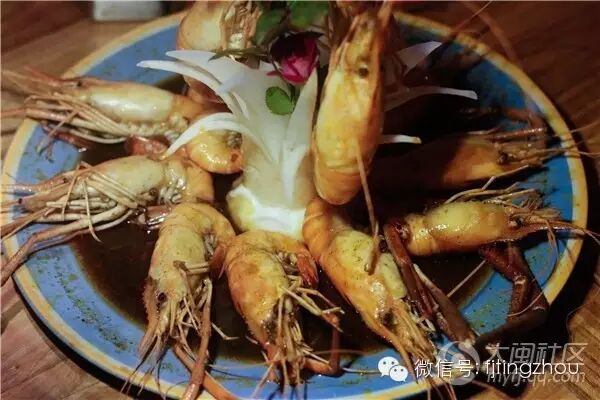 【秘制泰国虾】198,强推这个,虾的个头非常大,虾肉比一般的草虾还要大一些,简直可以用肥硕来形容,完全不用担心肉太老太柴,肉质鲜嫩Q弹,搭配底下的秘制酱料,会有一点辣,但是连不吃辣的我都忍不住多蘸两下,超美味。